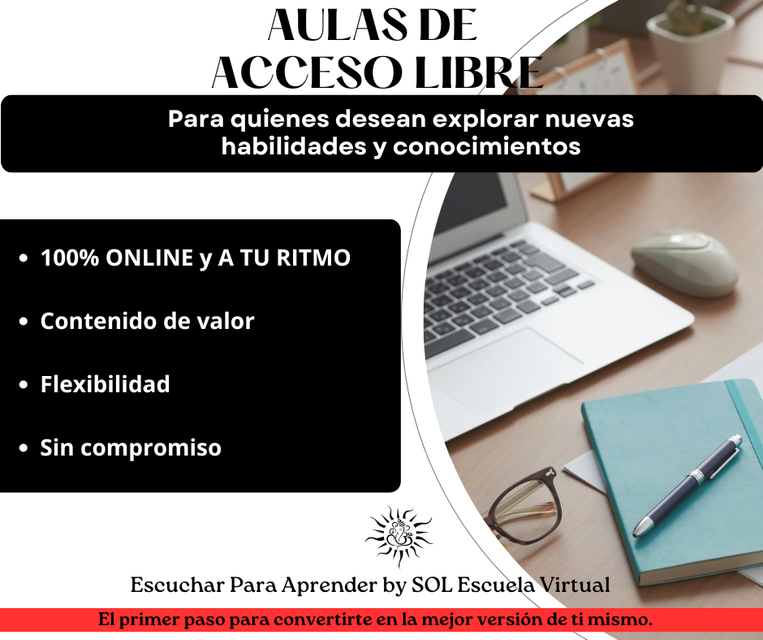 ¿Listo para empezar tu viaje de crecimiento personal pero no sabes por dónde? En SOL Escuela Virtual, creemos que el aprendizaje debe ser accesible para todos. Por eso, hemos creado las Aulas de Acceso Libre, un espacio diseñado para quienes desean explorar nuevas habilidades y conocimientos sin costo alguno.